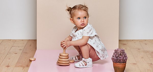 The soft stabilizer and the wider heel base allow the baby, through its own structures, to control the medial-lateral movement of the foot and maintain balance in its first steps.