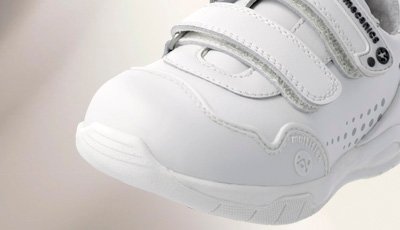 The wear patterns of the shoes in children of these ages have been analyzed and a reinforced toe cap has been designed for greater resistance to the friction of the shoe.